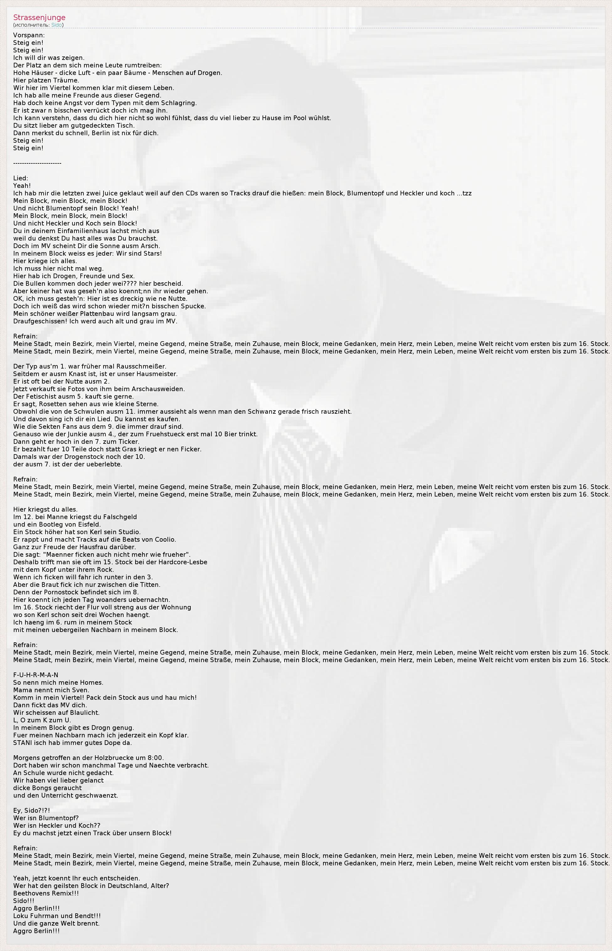 А как ты думаешь, о чем песня "Strassenjunge" ?