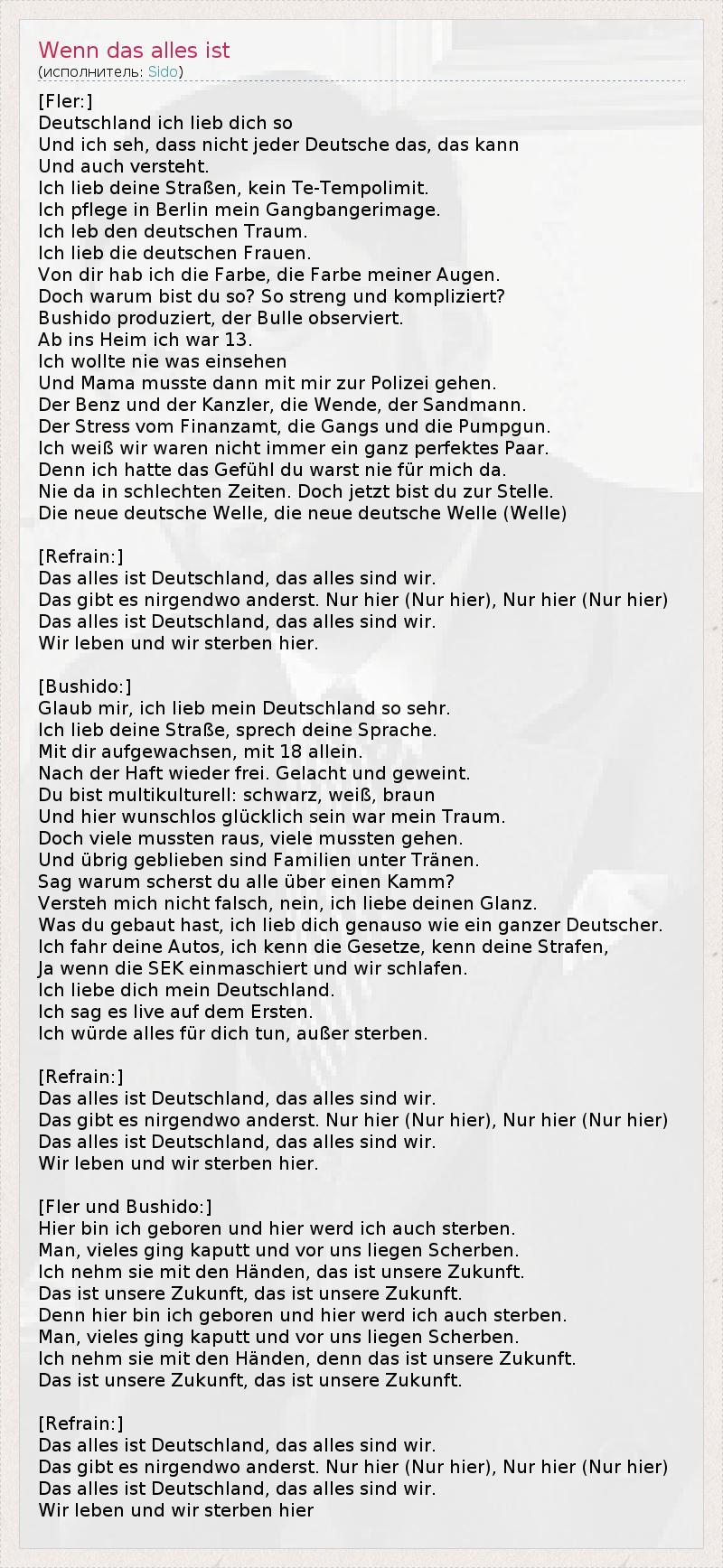 А как ты думаешь, о чем песня "Wenn das alles ist" ?