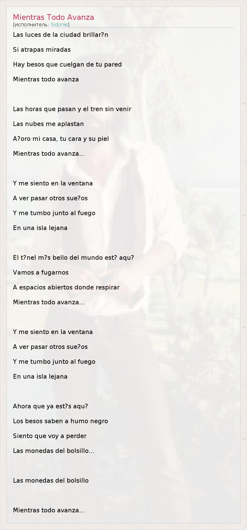 А как ты думаешь, о чем песня "Mientras Todo Avanza" ?