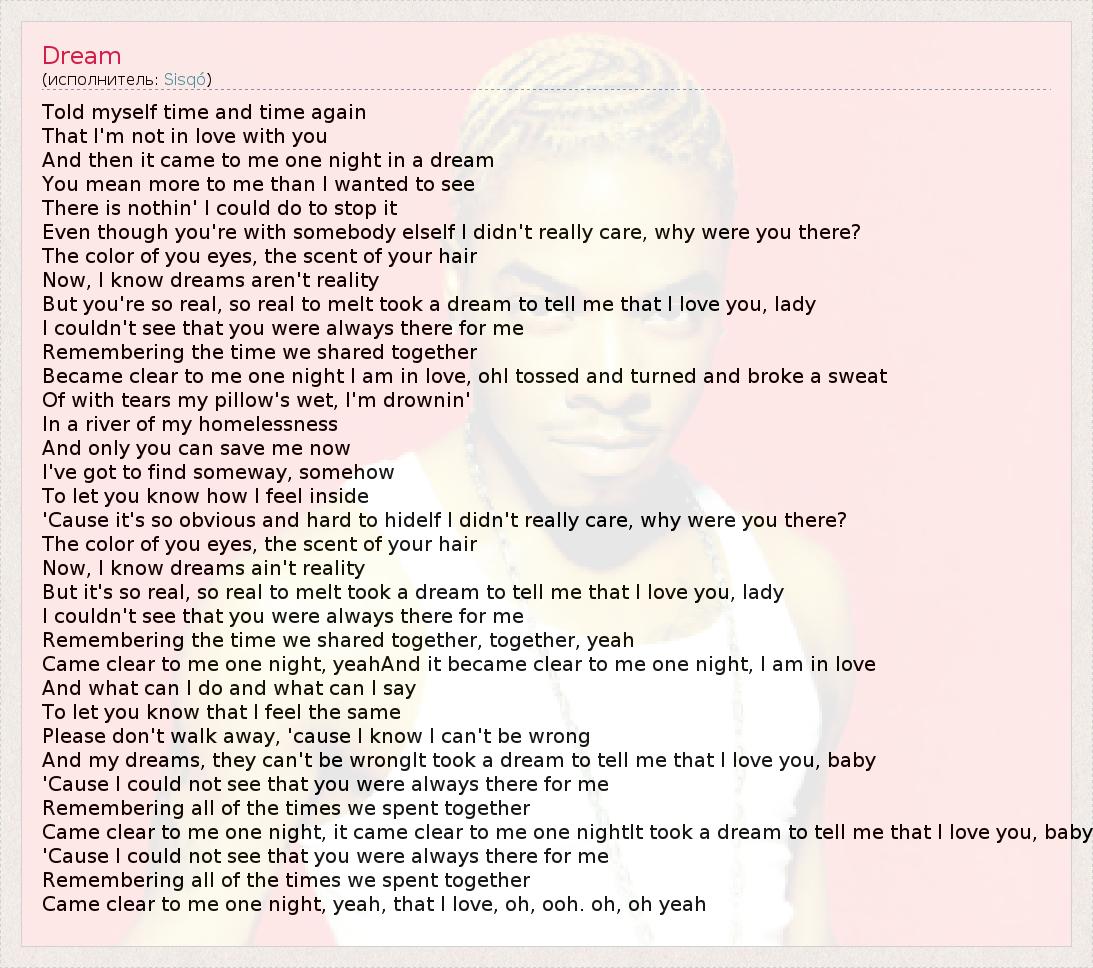 But you're so real, so real to meIt took a dream to tell me that I love you, lady