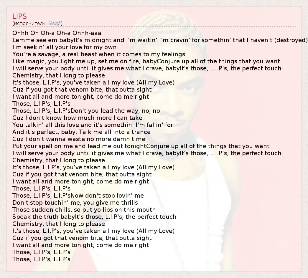 I will serve your body until it gives me what I crave, babyIt's those, L.I.P's, the perfect touch