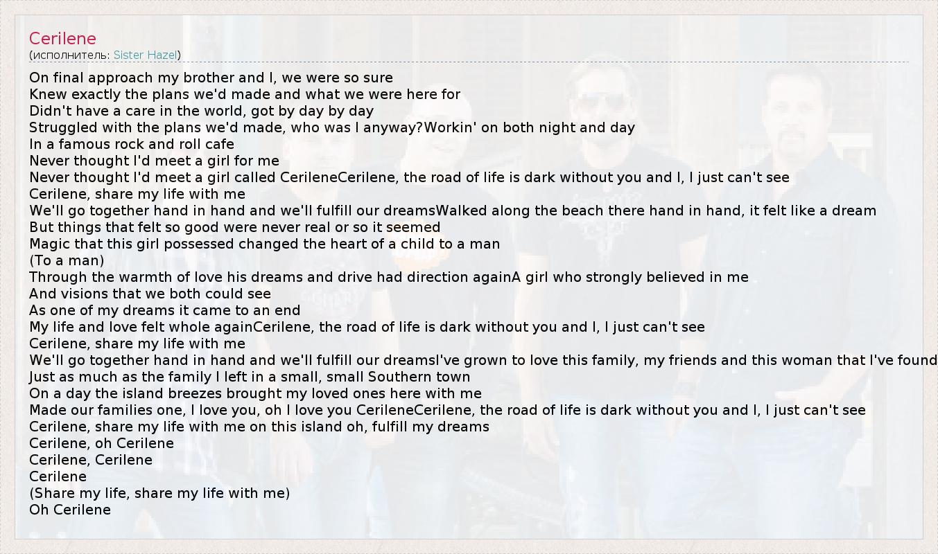 Never thought I'd meet a girl called CerileneCerilene, the road of life is dark without you and I, I just can't see