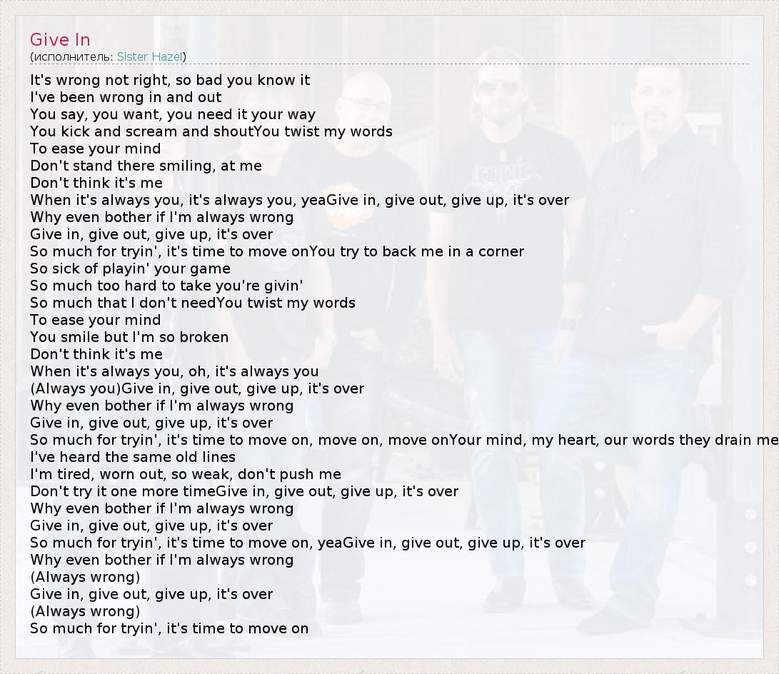 When it's always you, it's always you, yeaGive in, give out, give up, it's over