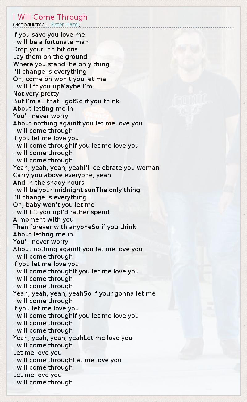 А как ты думаешь, о чем песня "I Will Come Through" ?