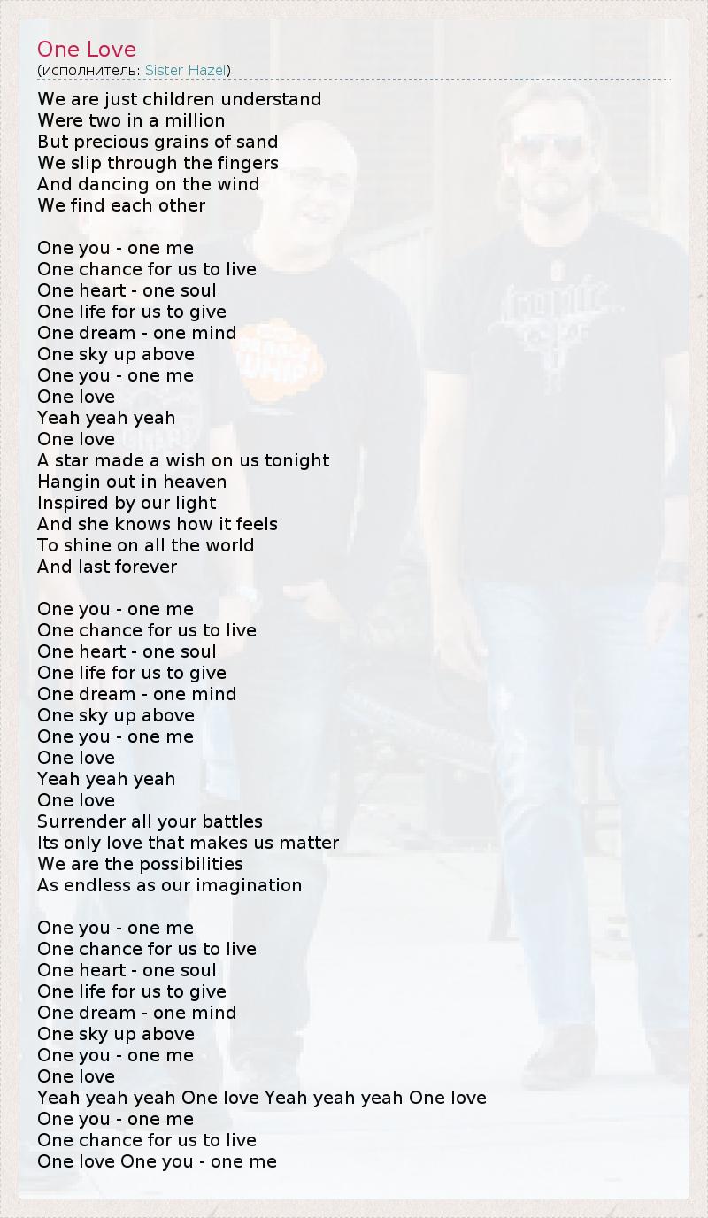 Yeah yeah yeah One love Yeah yeah yeah One love