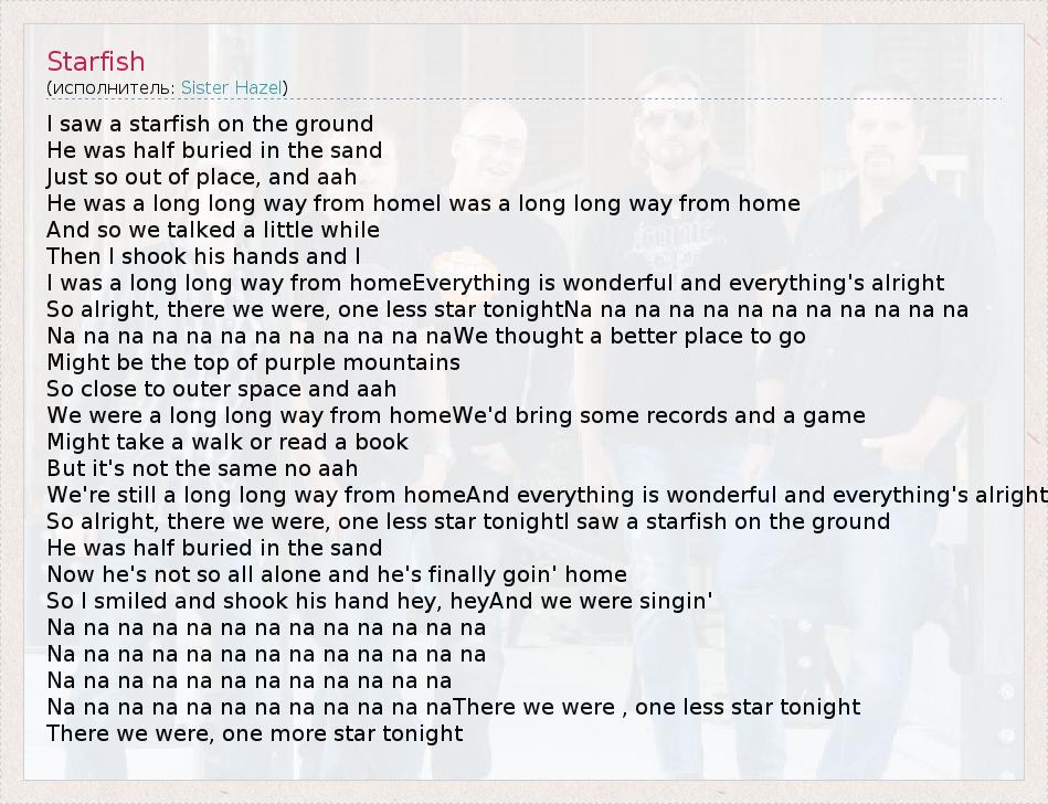 А как ты думаешь, о чем песня "Starfish" ?