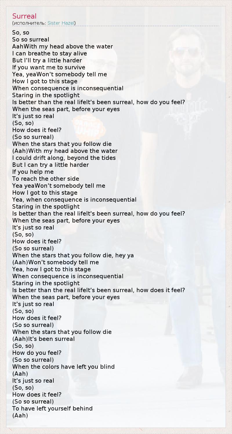 Это интересно:Группа Sister Hazel сформирована в 1993 в Гейнсвилле, штат Флорида. Ребята умело сочетают акустический рок, фолк и поп музыку. Группа состоит из пяти человек: вокалист / гитарист Кен Блок, барабанщик Марк Трояновски (который, к слову, играл одновременно в нескольких джазовых ансамблях Флориды), гитарист Эндрю Копланд, басист Джет Береш, гитарист Райан Ньюэлл. Свой дебютный альбом "Sister Hazel"... продолжение