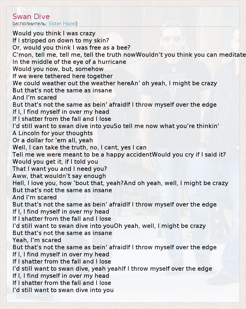 А как ты думаешь, о чем песня "Swan Dive" ?