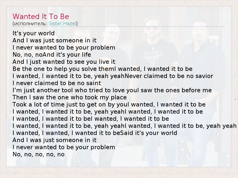 А как ты думаешь, о чем песня "Wanted It To Be" ?