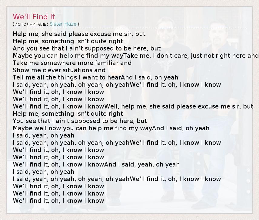 We'll find it, oh, I know I knowWell, help me, she said please excuse me sir, but