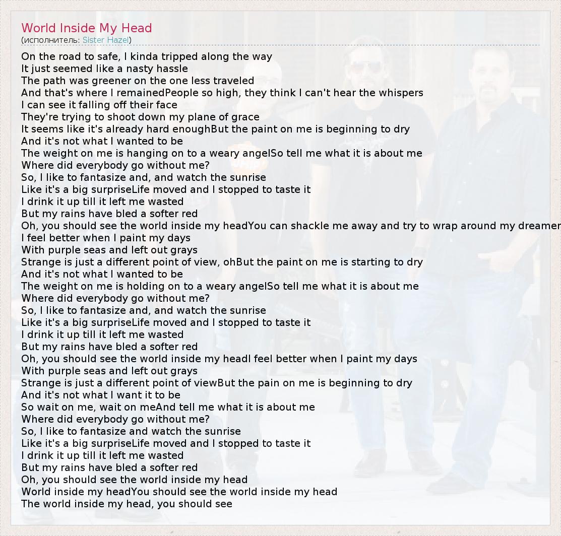 А как ты думаешь, о чем песня "World Inside My Head" ?
