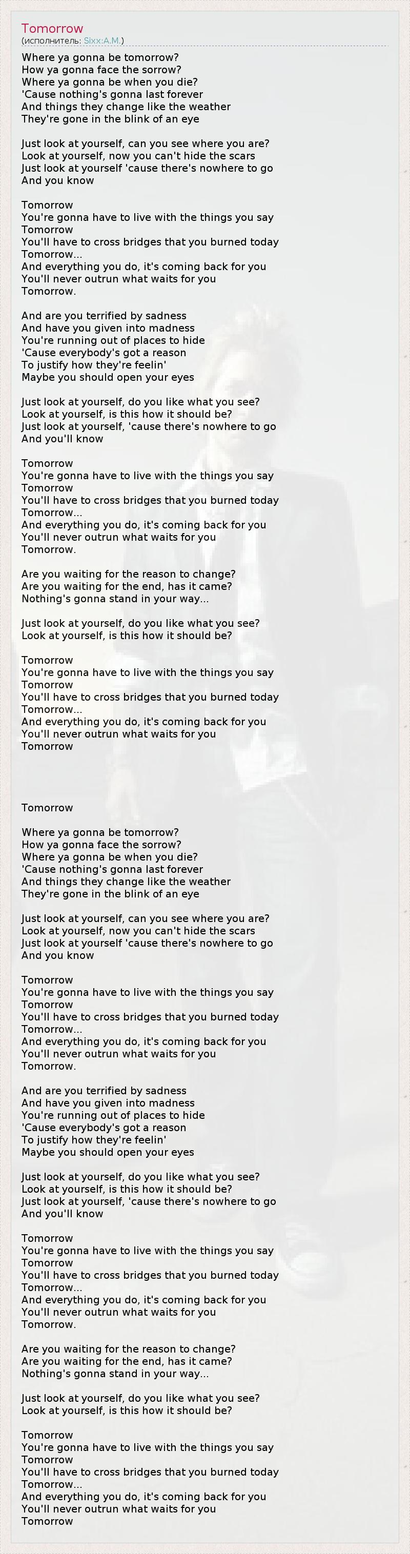 А как ты думаешь, о чем песня "Tomorrow" ?