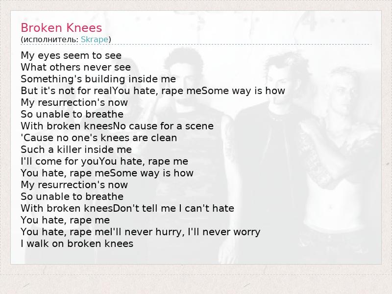 А как ты думаешь, о чем песня "Broken Knees" ?