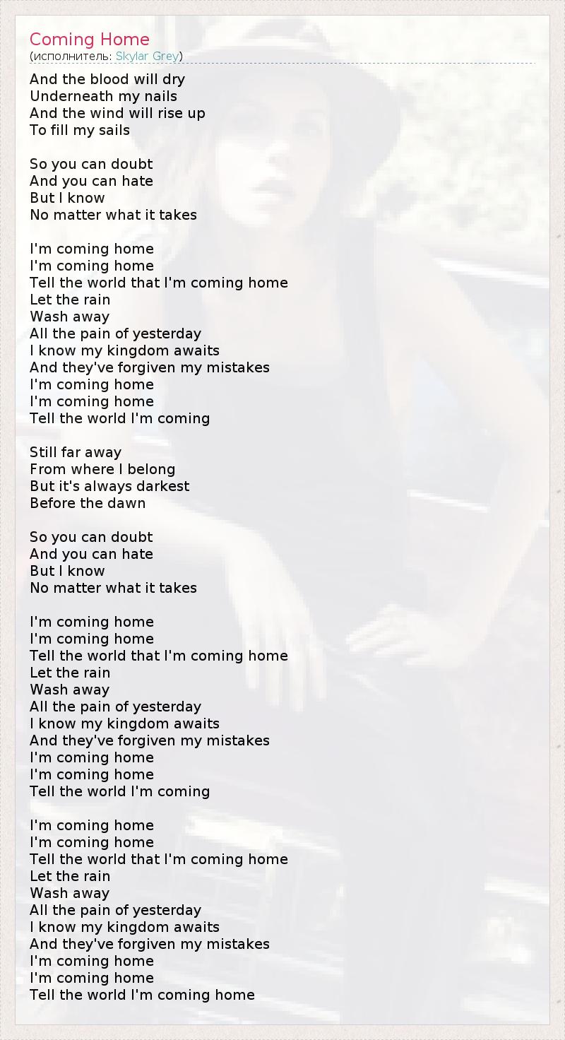 Это интересно:Skylar Grey, настоящее имя — Хо́лли Брук Ха́ферманн (англ. Holly Brook Hafermann; род. 23 февраля 1986 года, Мазомани, штат Висконсин, США) — американская певица, автор песен, музыкальный продюсер, гитаристка и пианистка. Номинантка на премию «Грэмми» (2011).Первые песни, автором которых является новая восходящая звезда Скайлар Грей на весь 2010 год поместились на первых... продолжение