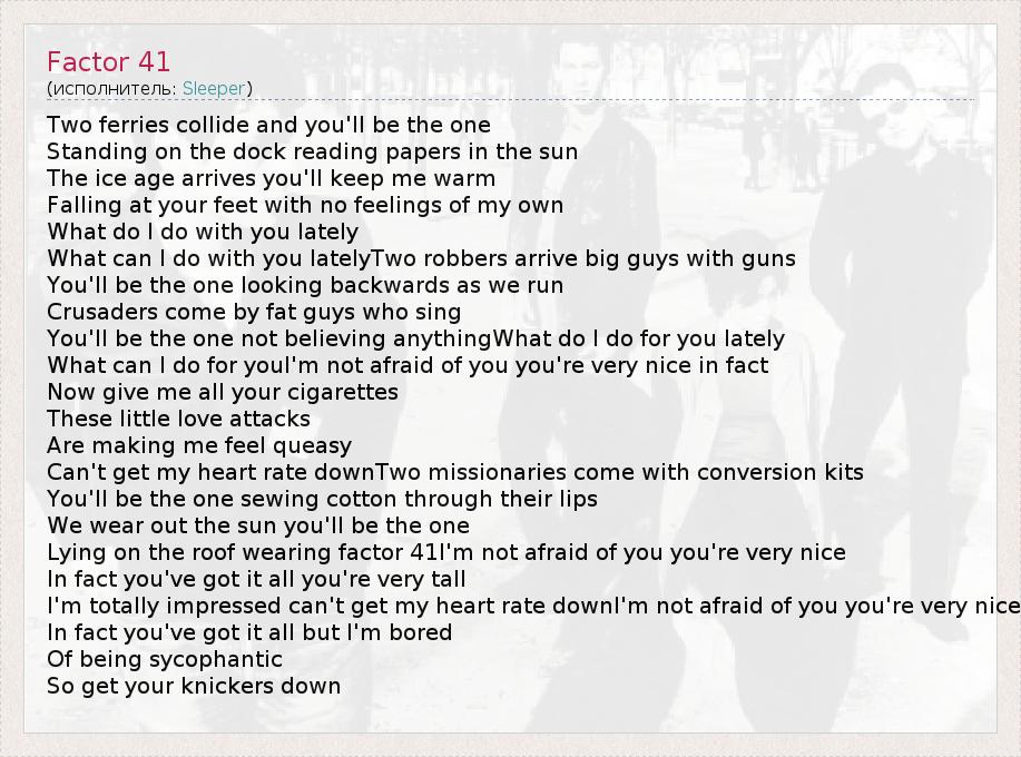 А как ты думаешь, о чем песня "Factor 41" ?