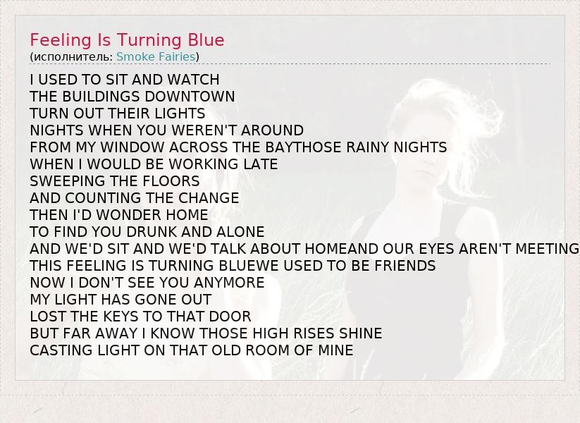 А как ты думаешь, о чем песня "Feeling Is Turning Blue" ?
