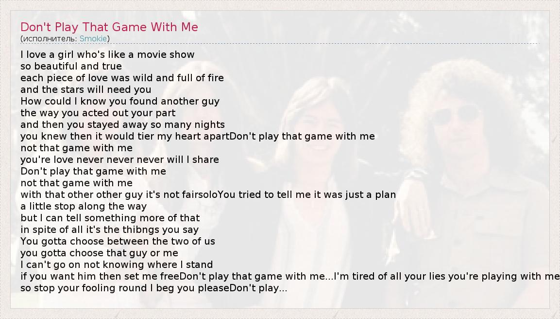 ГлавнаяИсполнителиSmokieDon't Play That Game With Me