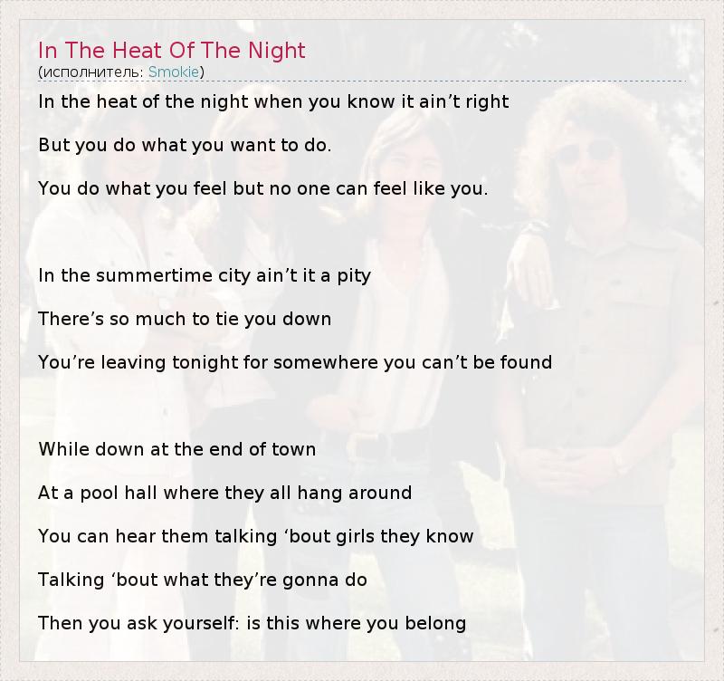 ГлавнаяИсполнителиSmokieIn The Heat Of The Night