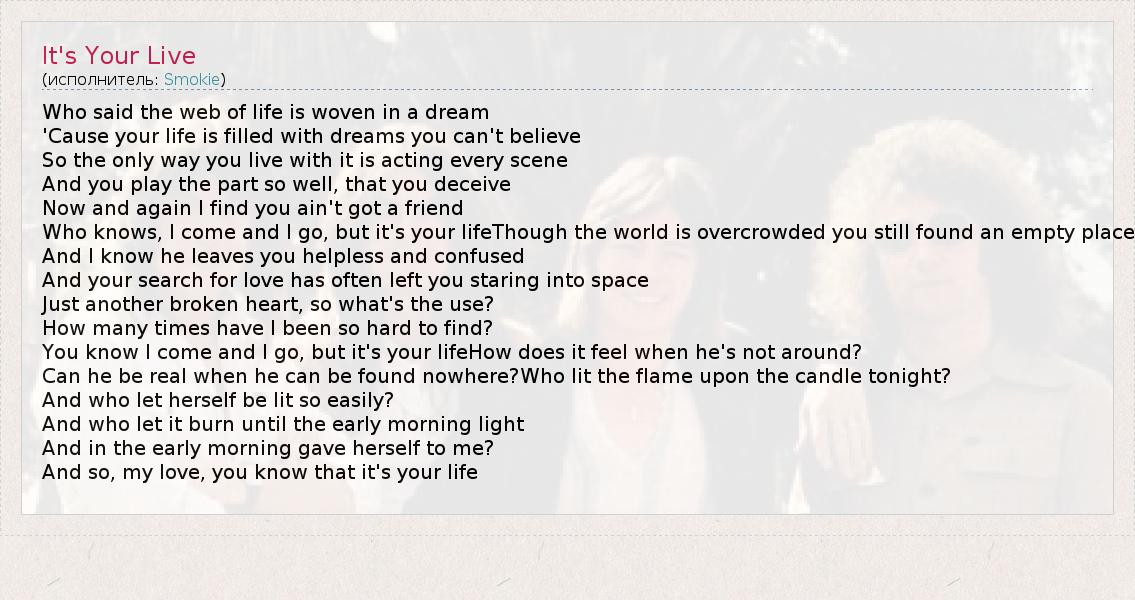 А как ты думаешь, о чем песня "It's Your Live" ?