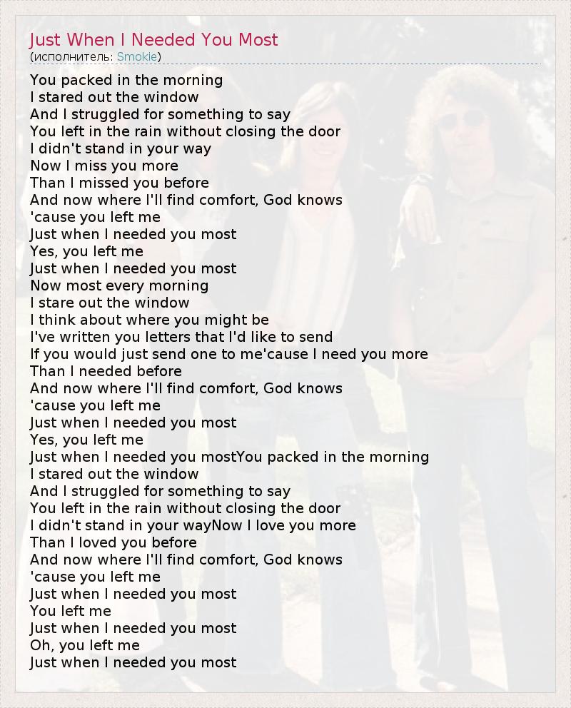 ГлавнаяИсполнителиSmokieJust When I Needed You Most