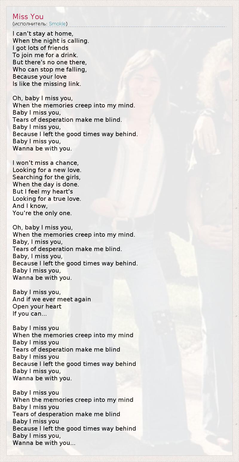 Это интересно:Ансамбль был создан в 1967 году Крисом Норманом и его друзьями Терри Аттли и Эланом Силсоном, которым в то время было по шестнадцать-семнадцать лет. Это была обычная любительская группа, которых в Британии насчитывалось не меньше тысячи. Но юношеская увлечённость со временем не угасла и привела Smokie на профессиональную сцену.Ансамбль неоднократно менял названия, первоначально он назывался... продолжение