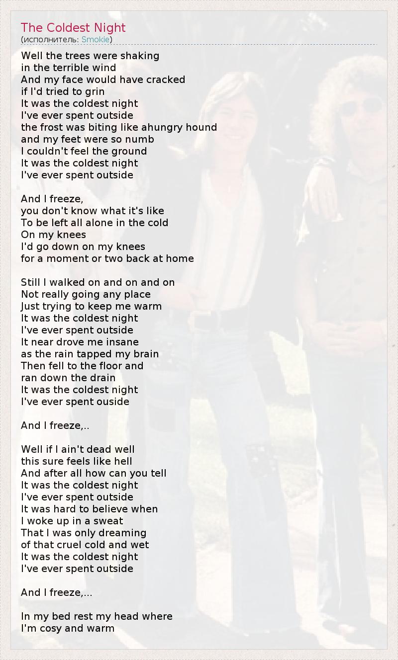 А как ты думаешь, о чем песня "The Coldest Night" ?