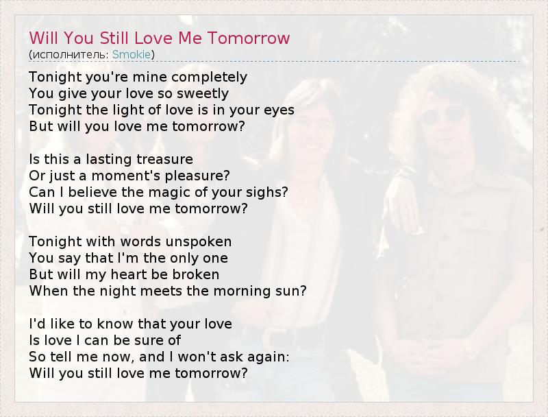 ГлавнаяИсполнителиSmokieWill You Still Love Me Tomorrow