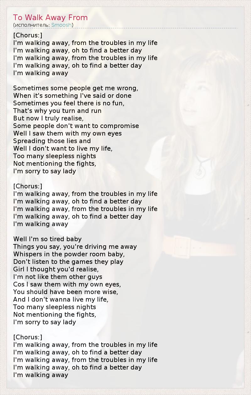 А как ты думаешь, о чем песня "To Walk Away From" ?