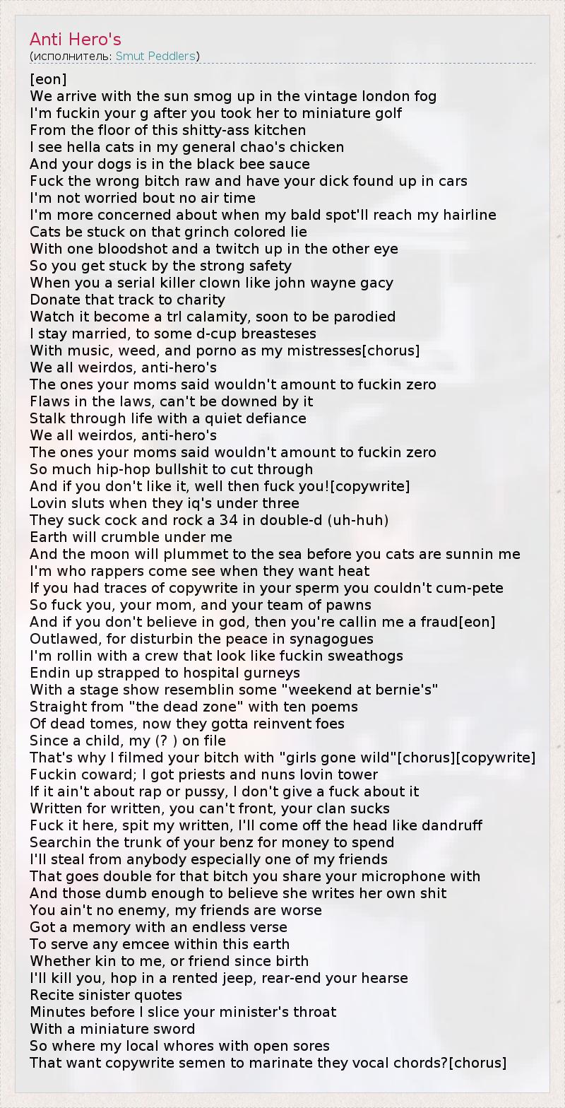 А как ты думаешь, о чем песня "Anti Hero's" ?