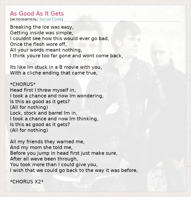 А как ты думаешь, о чем песня "As Good As It Gets" ?