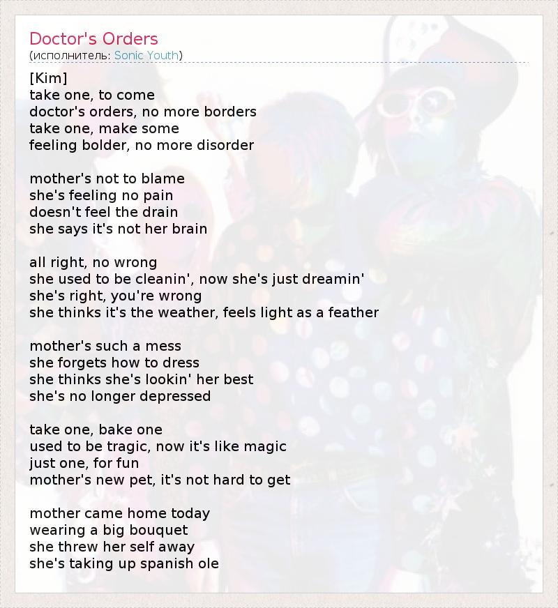 А как ты думаешь, о чем песня "Doctor's Orders" ?
