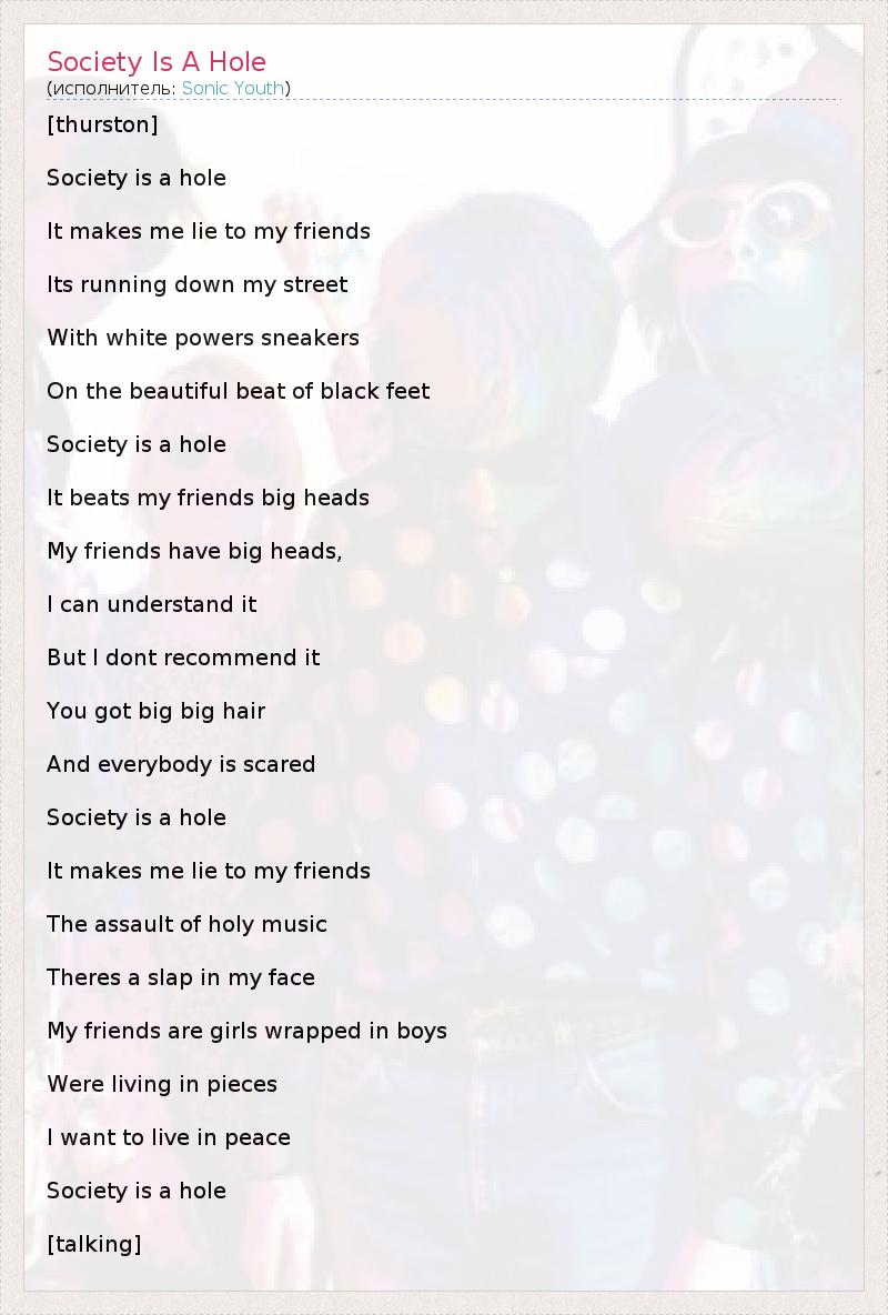 А как ты думаешь, о чем песня "Society Is A Hole" ?