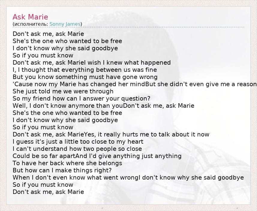 А как ты думаешь, о чем песня "Ask Marie" ?