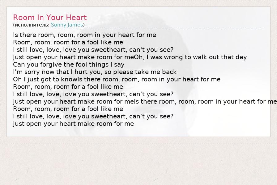А как ты думаешь, о чем песня "Room In Your Heart" ?