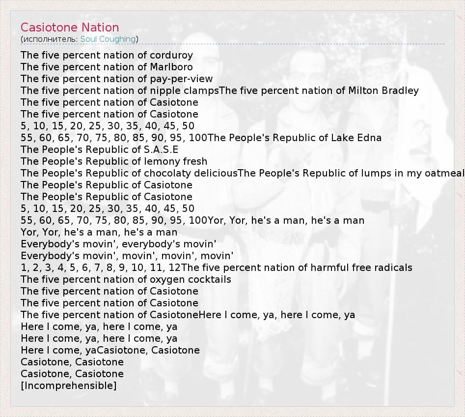The five percent nation of CasiotoneHere I come, ya, here I come, ya