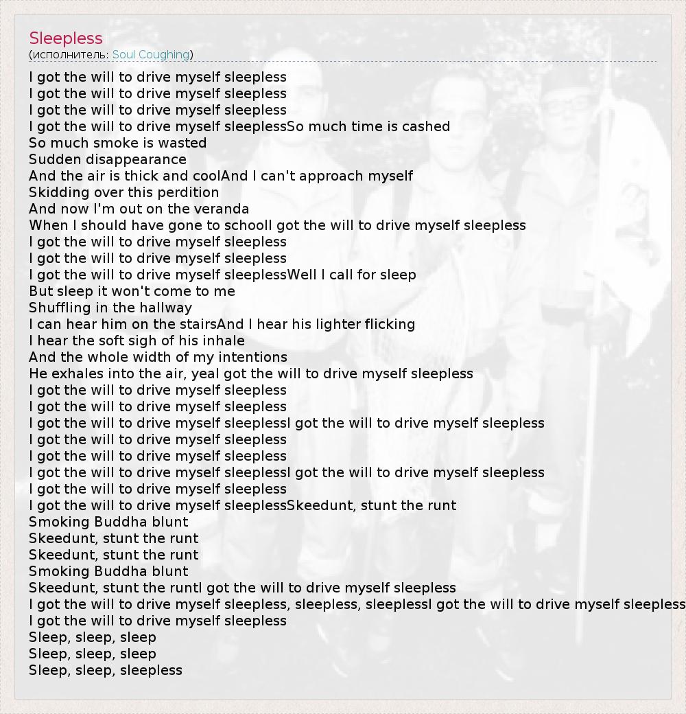 I got the will to drive myself sleepless, sleepless, sleeplessI got the will to drive myself sleepless