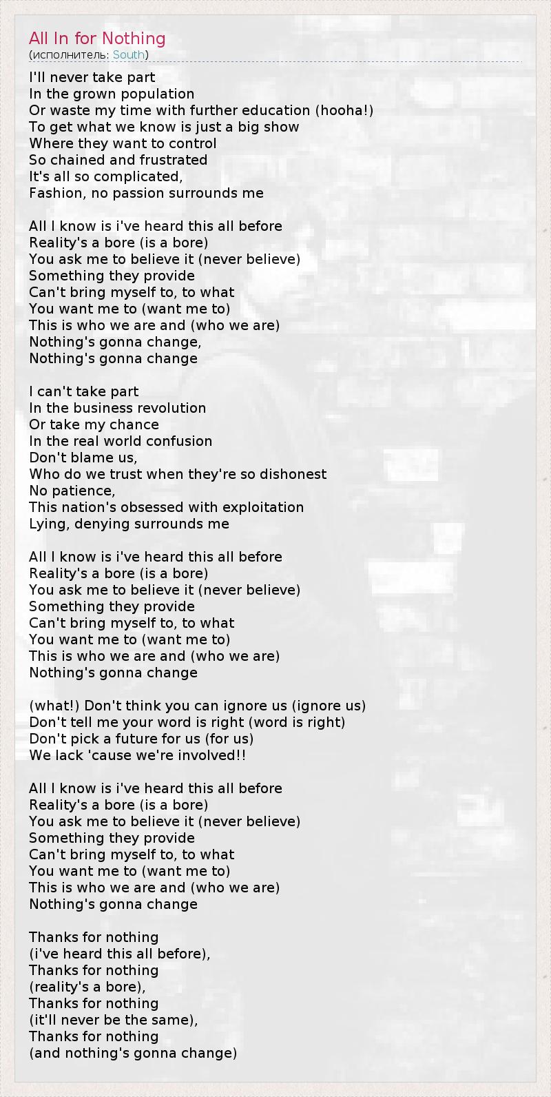 А как ты думаешь, о чем песня "All In for Nothing" ?