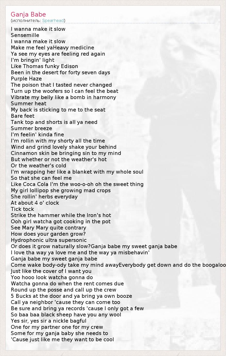 А как ты думаешь, о чем песня "Ganja Babe" ?