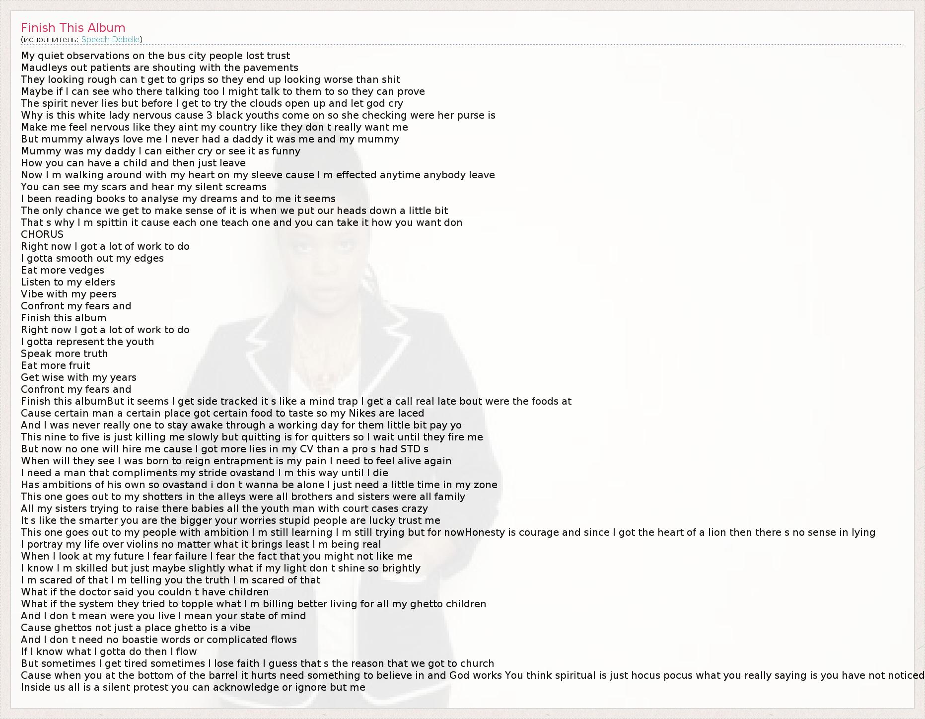 А как ты думаешь, о чем песня "Finish This Album" ?
