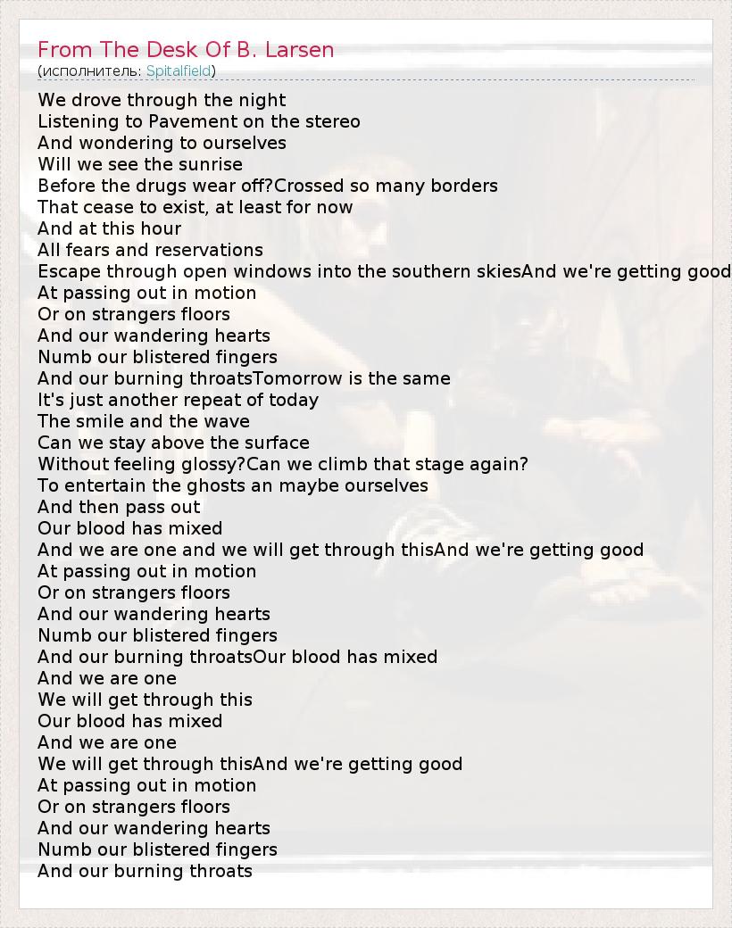 А как ты думаешь, о чем песня "From The Desk Of B. Larsen" ?