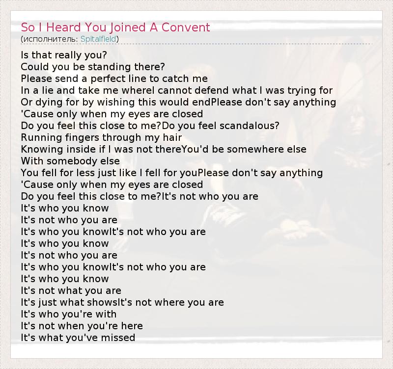 А как ты думаешь, о чем песня "So I Heard You Joined A Convent" ?
