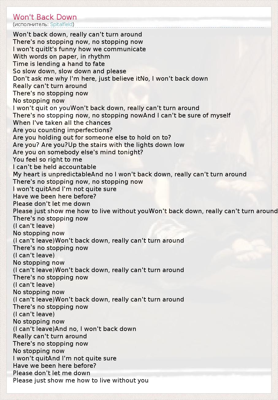 А как ты думаешь, о чем песня "Won't Back Down" ?