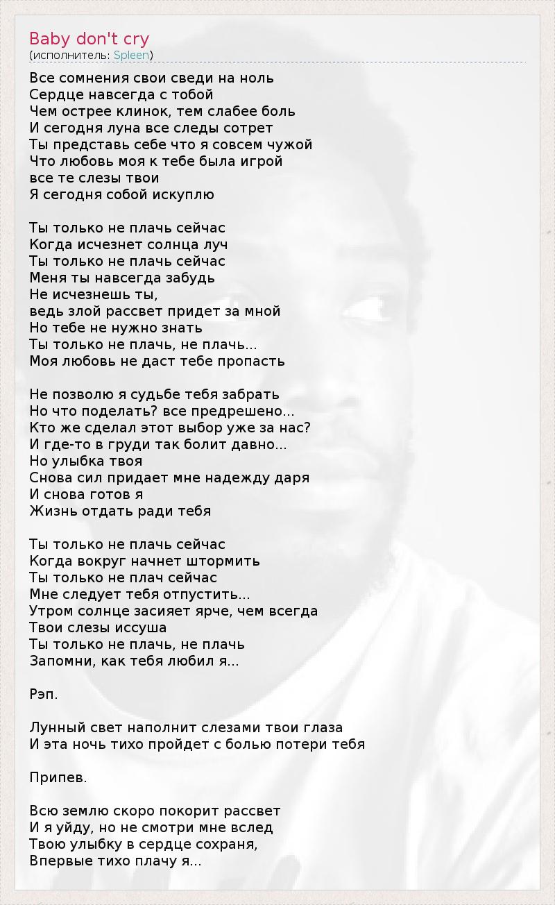 А как ты думаешь, о чем песня "Baby don't cry" ?