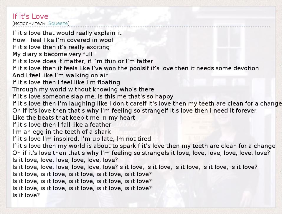 А как ты думаешь, о чем песня "If It's Love" ?