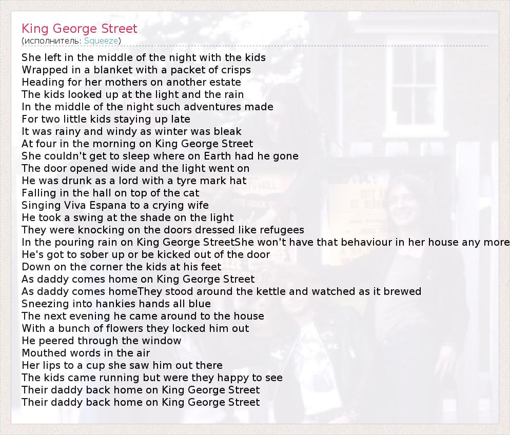 А как ты думаешь, о чем песня "King George Street" ?