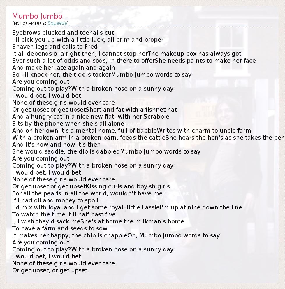А как ты думаешь, о чем песня "Mumbo Jumbo" ?
