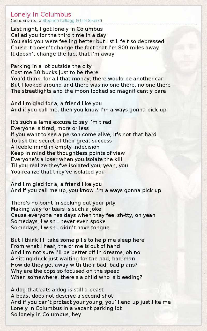 А как ты думаешь, о чем песня "Lonely In Columbus" ?