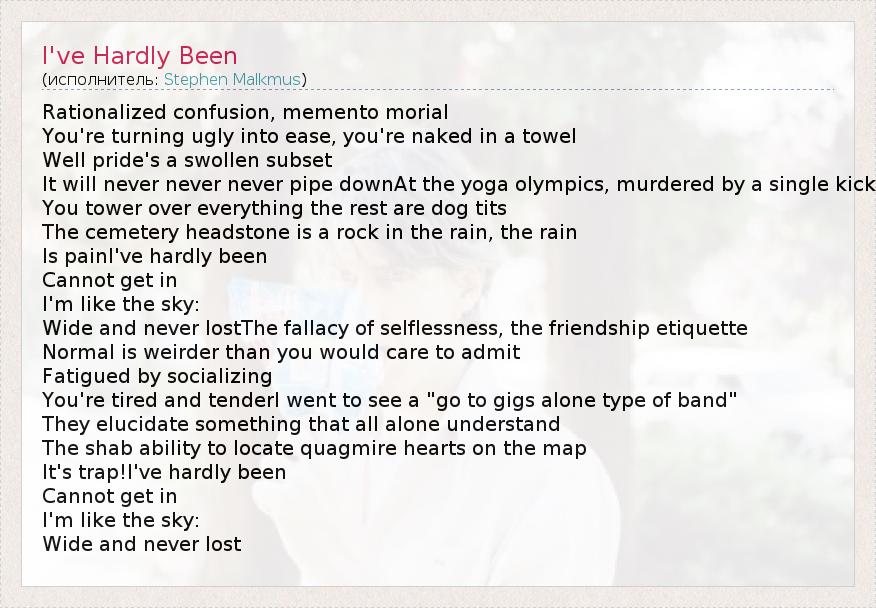 А как ты думаешь, о чем песня "I've Hardly Been" ?