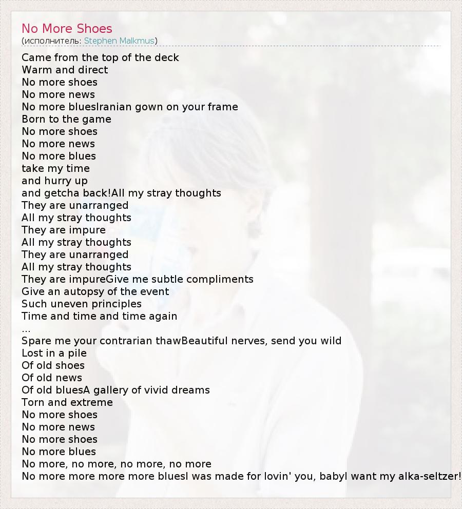 А как ты думаешь, о чем песня "No More Shoes" ?