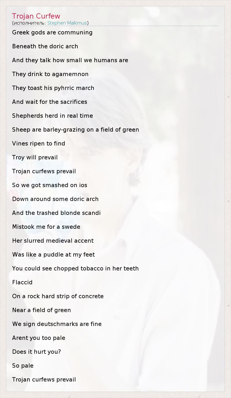 А как ты думаешь, о чем песня "Trojan Curfew" ?